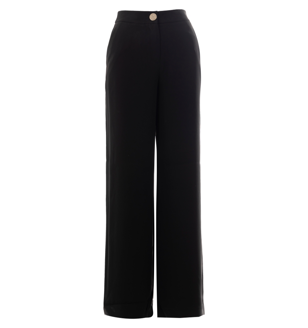 Pantalone Donna, modello largo con chiusura zip e bottone