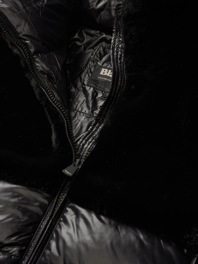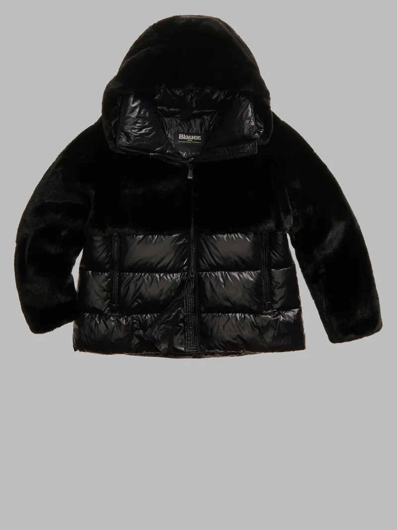 Giubbotto,donna metàpelliccia e metà piumino con cappuccio non staccabile chisura con zip