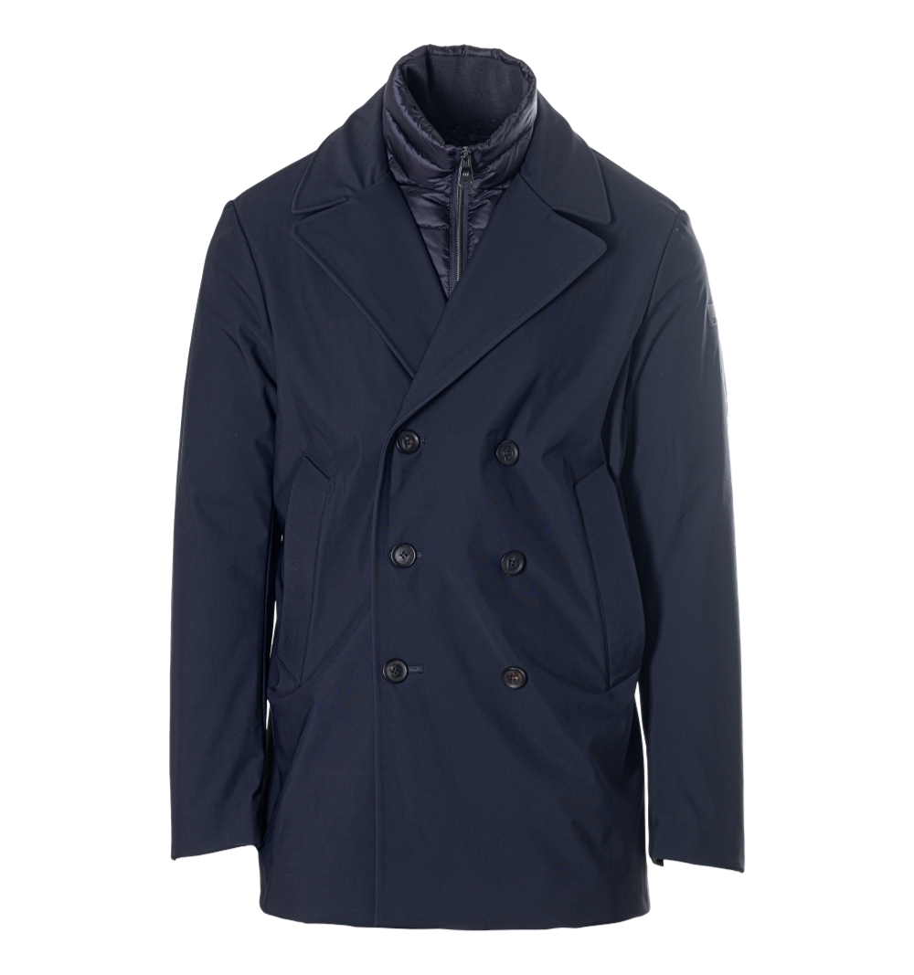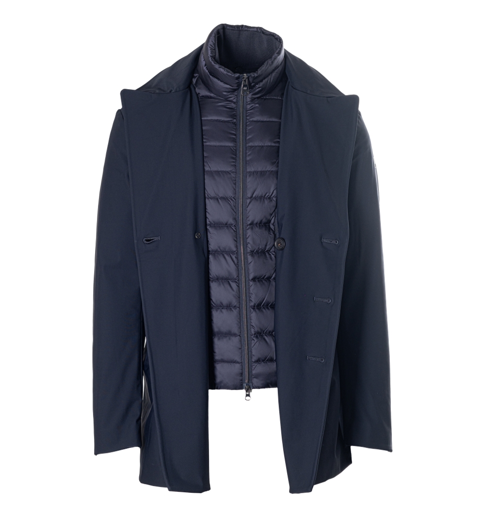 Giubbotto Uomo modello doppio petto con bottoni in tinta finto gilet interno staccabile