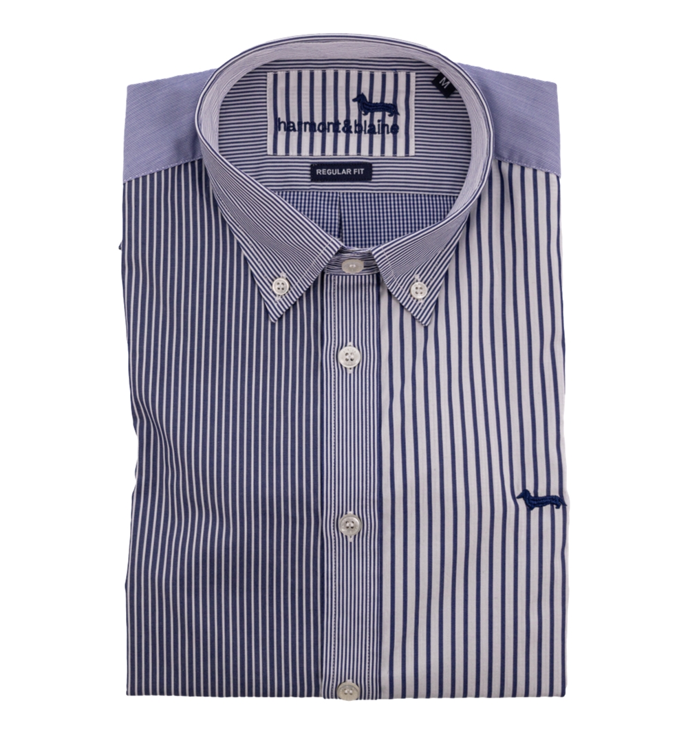 Camici uomo modello PATCHWORK 8 tessuti manica lunga con bottoni in madre perla, vestibilità regolare