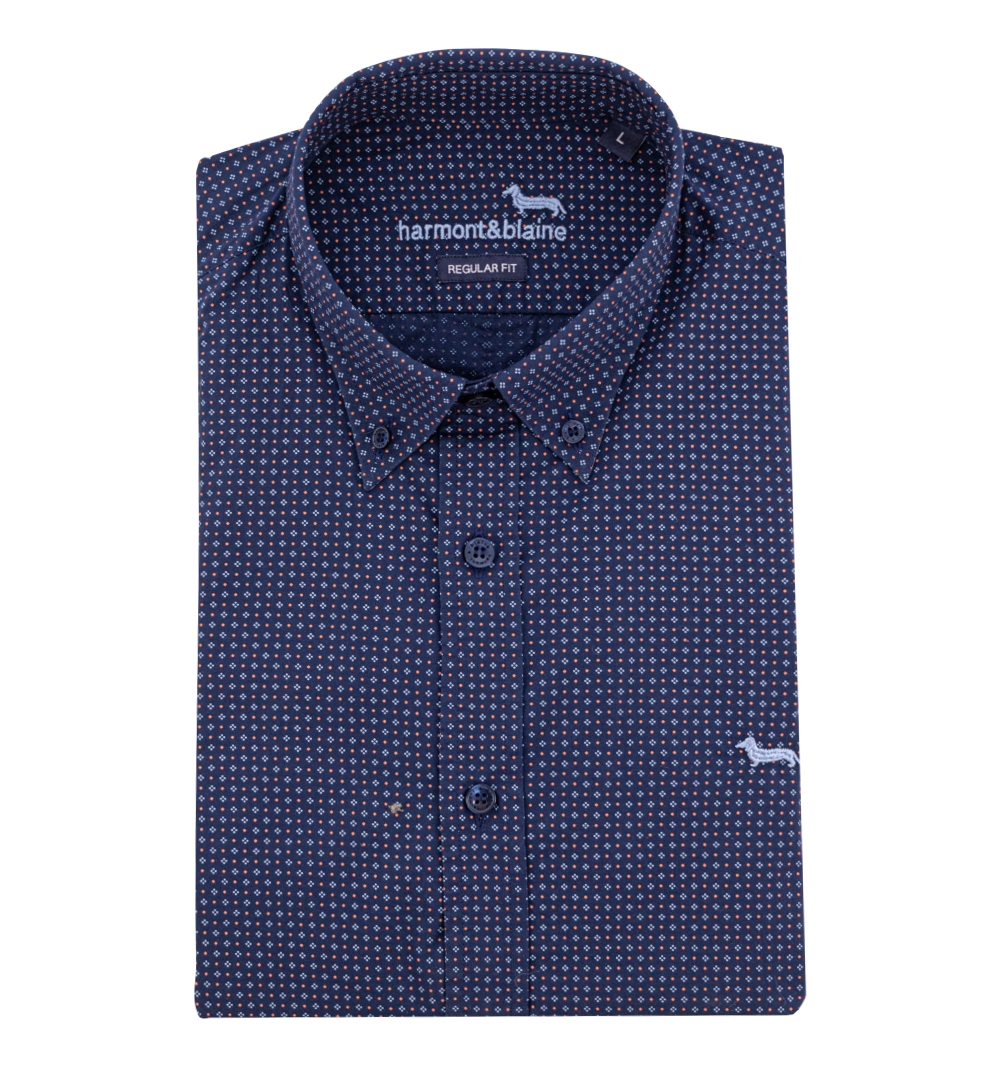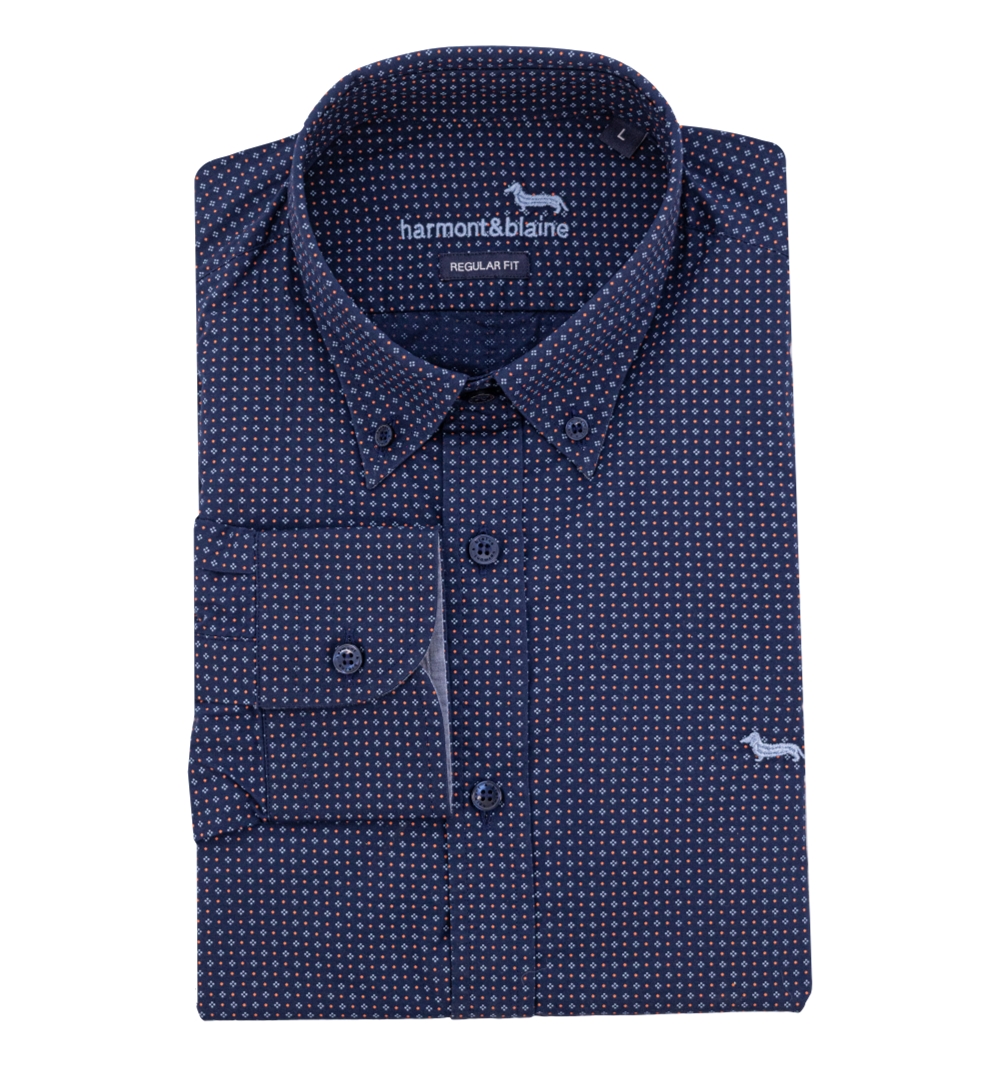 Camicia Uomo modello manica lunga in micro fantasia, bottoni in tinta. vestibilità regolare