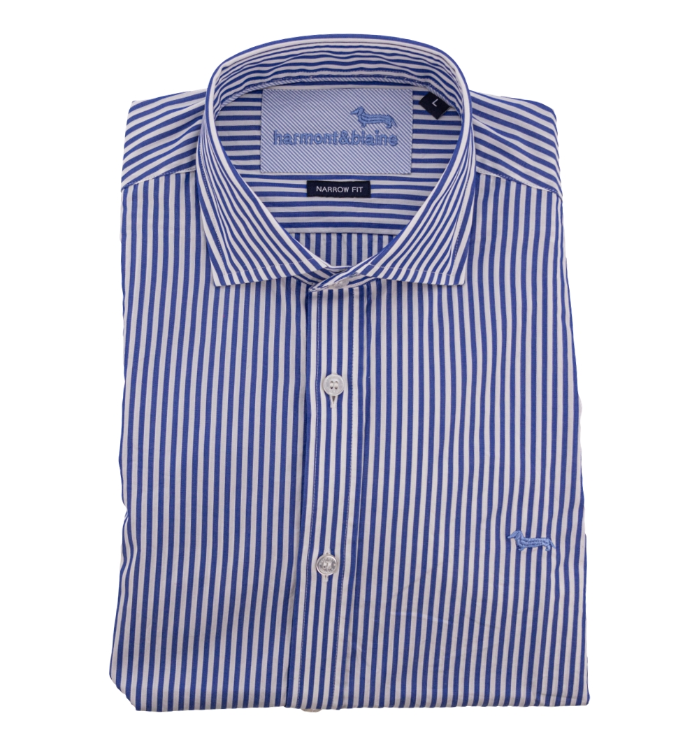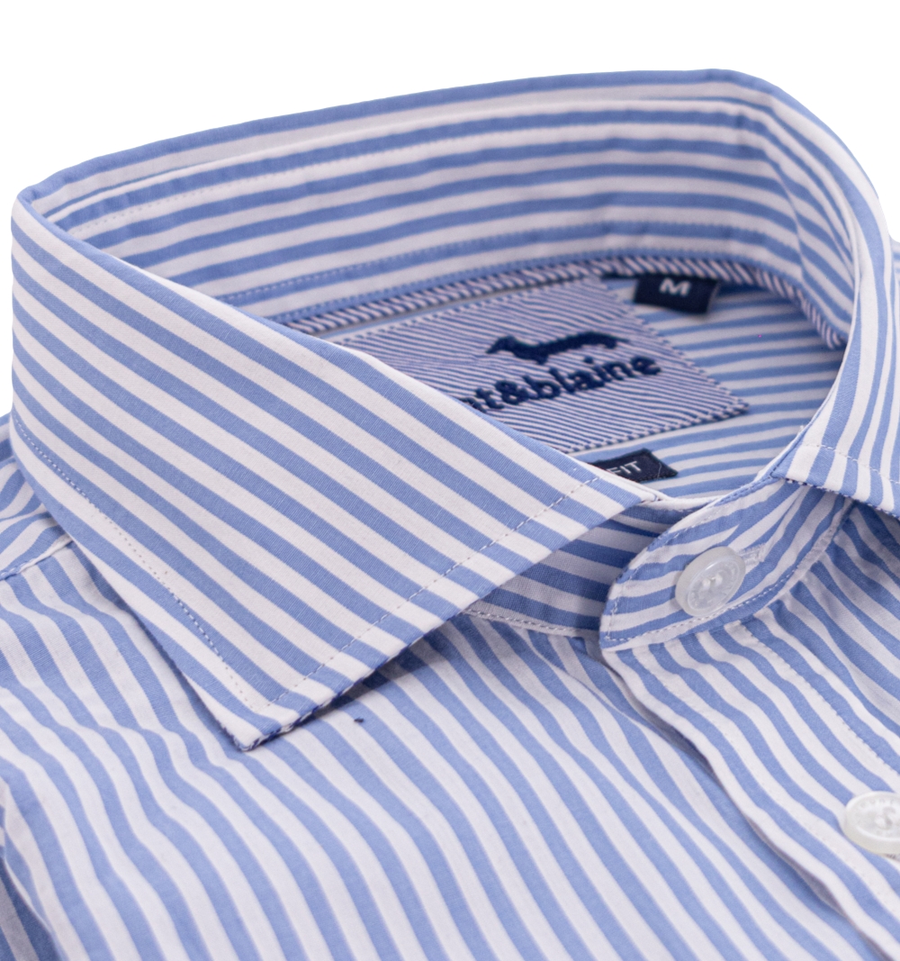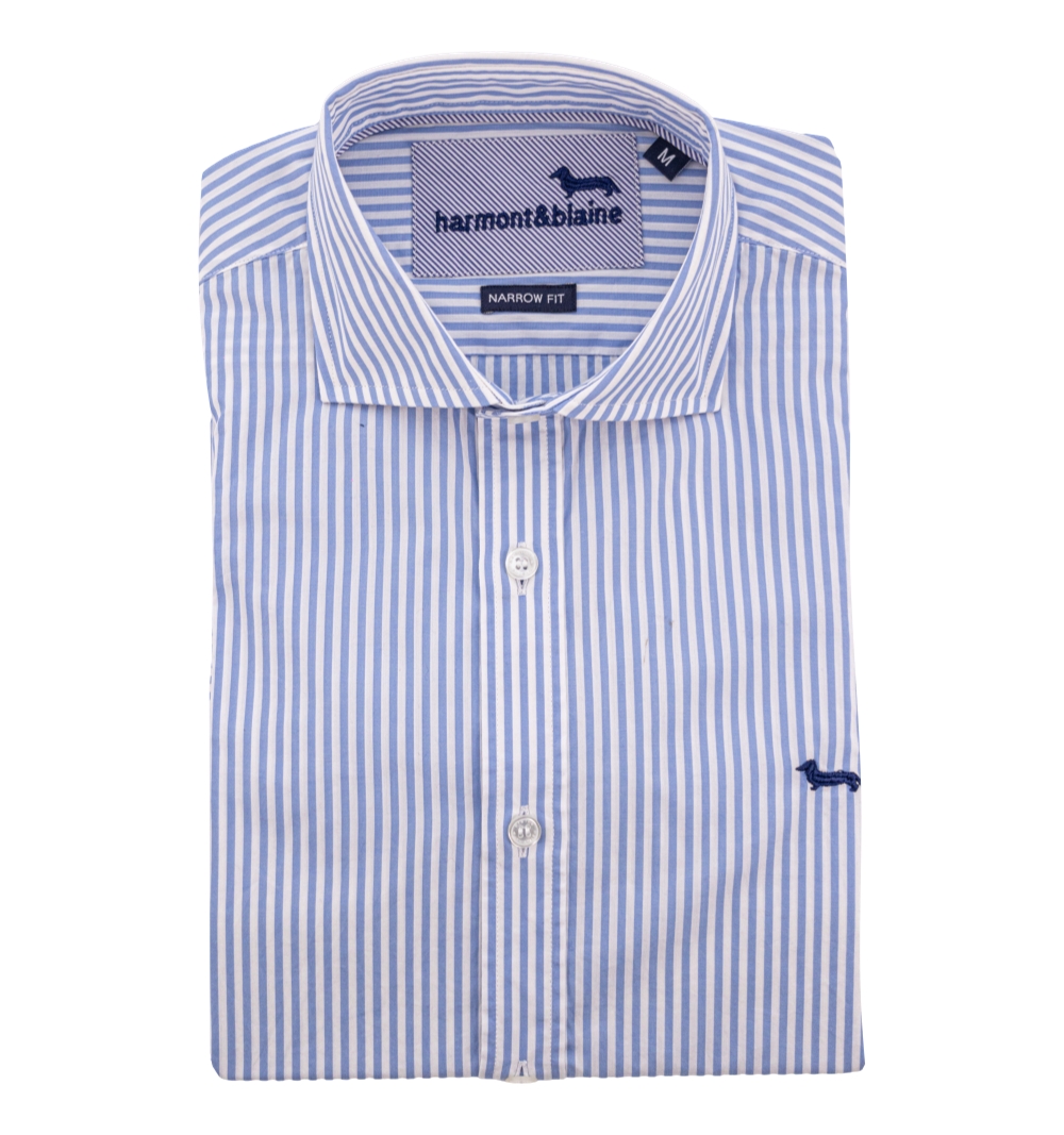 Camicia Uomo, modello slim, con bottoni in madre perla collo classico tessuto bacchettato, logo ricamato lato cuore.