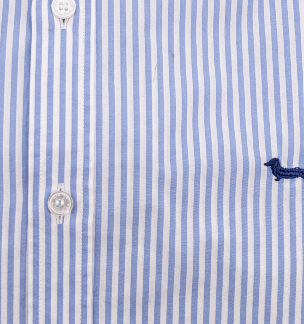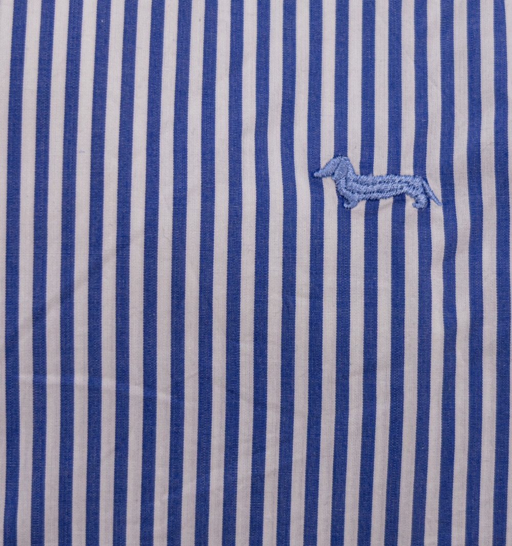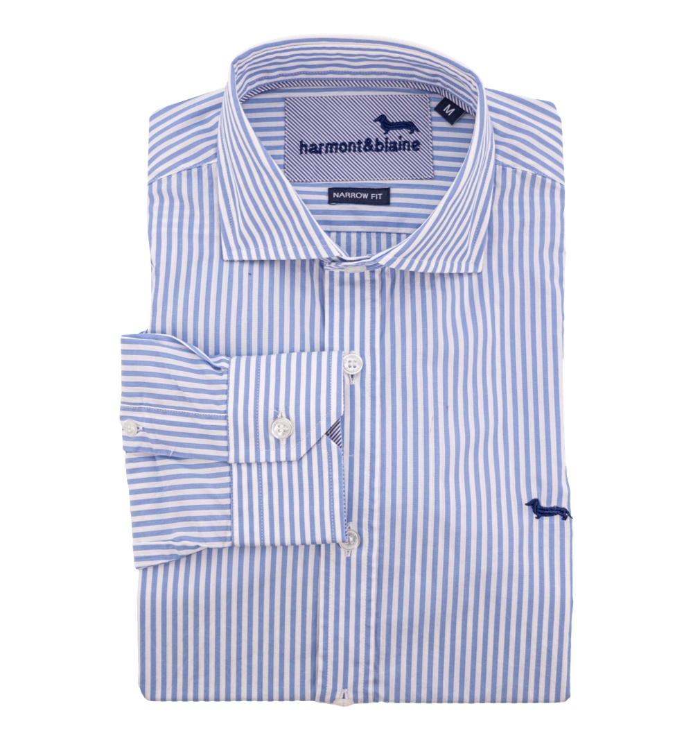 Camicia Uomo, modello slim, con bottoni in madre perla collo classico tessuto bacchettato, logo ricamato lato cuore.
